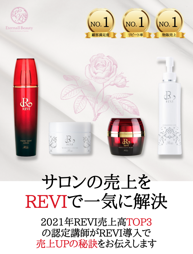 銀座ロッソ・言野優子社長プロデュース。若化をテーマにした「REVI」。唯一無二の商材力でモデル・女優御用達のブランドです。