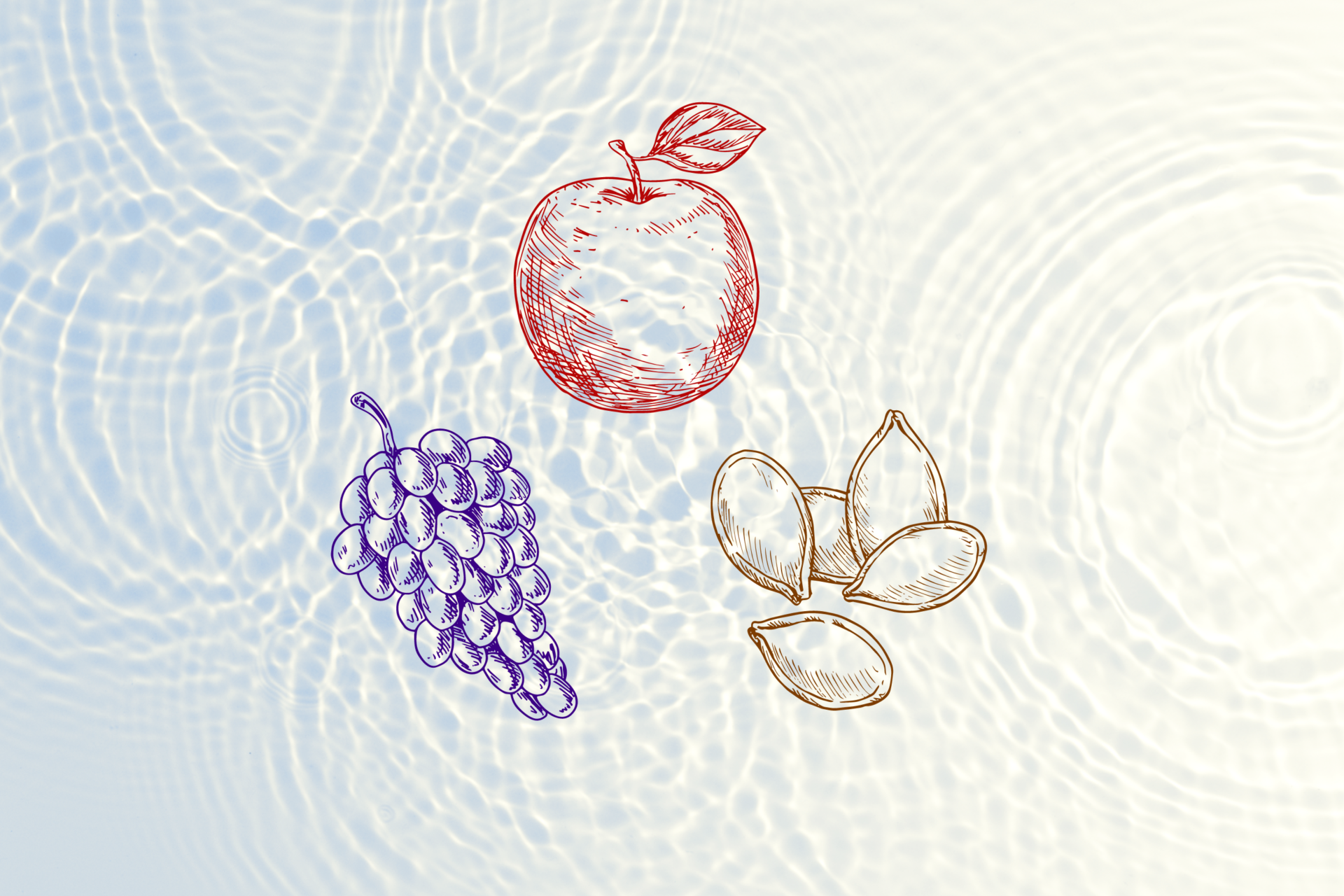 REVIの全商品に配合されているリンゴ、ブドウ、アルガン幹細胞は肌の成長と再生の要の成分になっています。